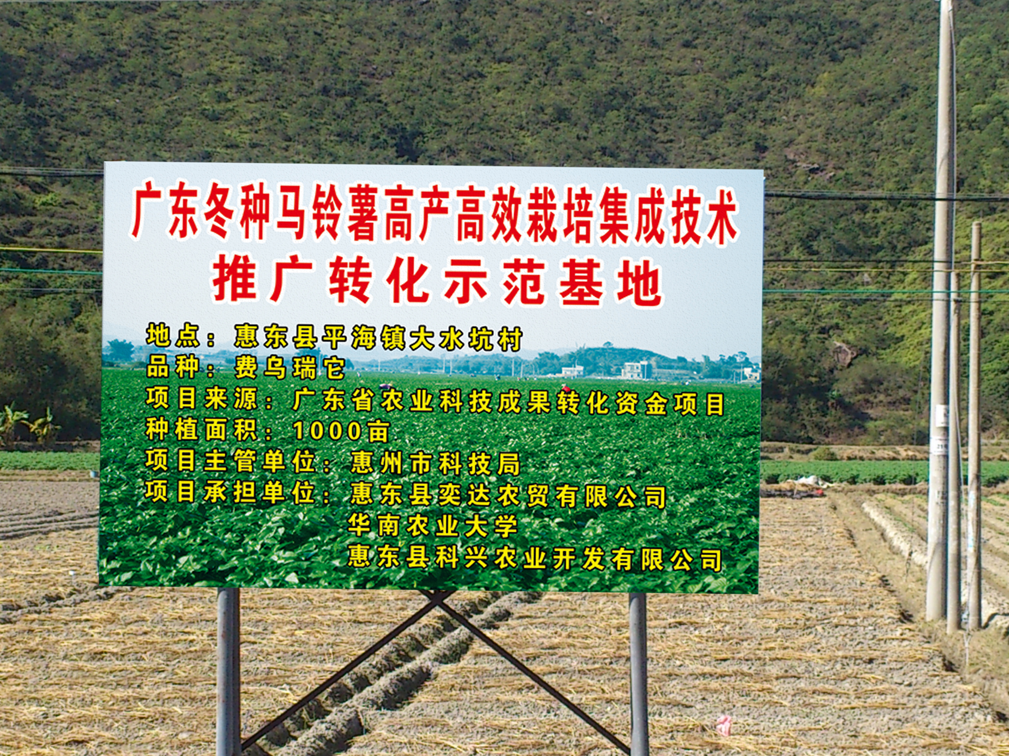 技术概述:应用于冬种马铃薯高产优质高效生产等领域,涉及作物栽培技术原理、植物营养与平衡施肥技术原理、病虫害综合防治技术原理、水旱轮作系统生产力可持续原理等。研究并集成了适宜广东的冬种马铃薯高产优质高效栽培技术,确定了冬种马铃薯最优耕作体系。该技术整体处于国际先进水平,经济效益显著。于2012年获科学技术成果鉴定证书,粤科成登字[2012]0472号。应用项目获得过广东省农业技术推广一等奖,2011003;全国农牧渔业丰收奖二等奖,FCG-2013-2-020-03D。