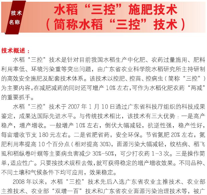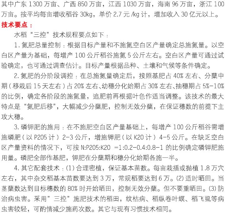 2018年主推技术:水稻三控施肥技术
