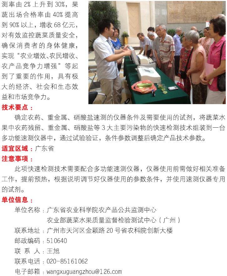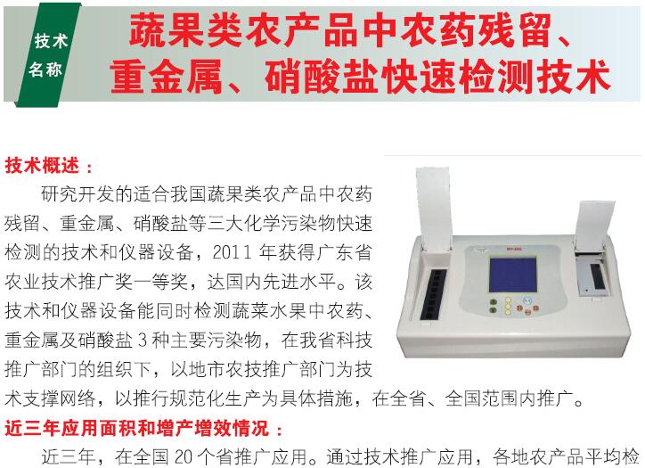 2018年主推技术:蔬果类农产品中农药残留、重金属、硝酸盐快速检测技术