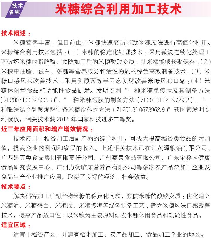 2018年主推技术:米糠综合利用加工技术