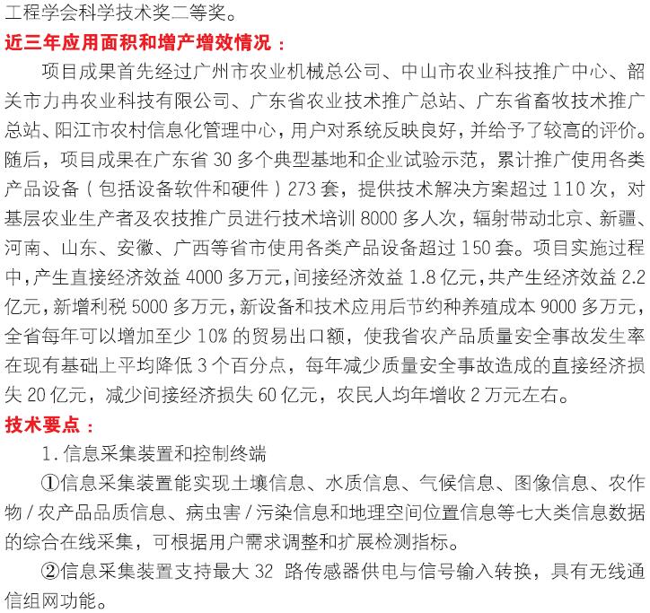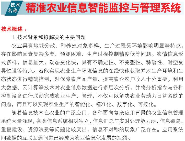 2018年主推技术:精准农业信息智能监控与管理系统
