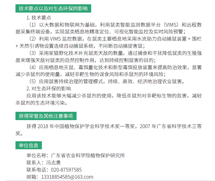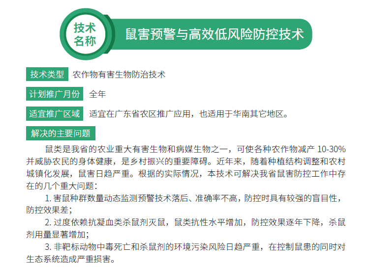 2019年主推技术:鼠害预警与高效低风险防控技术