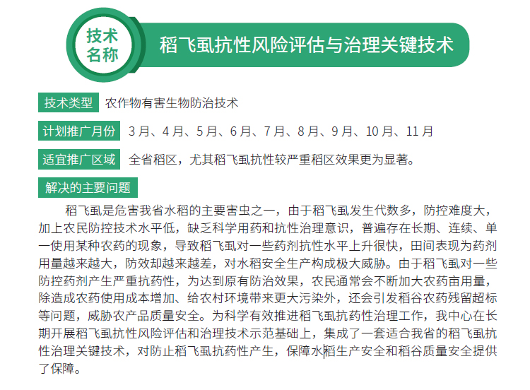 2019年主推技术:稻飞虱抗性风险评估与治理关键技术