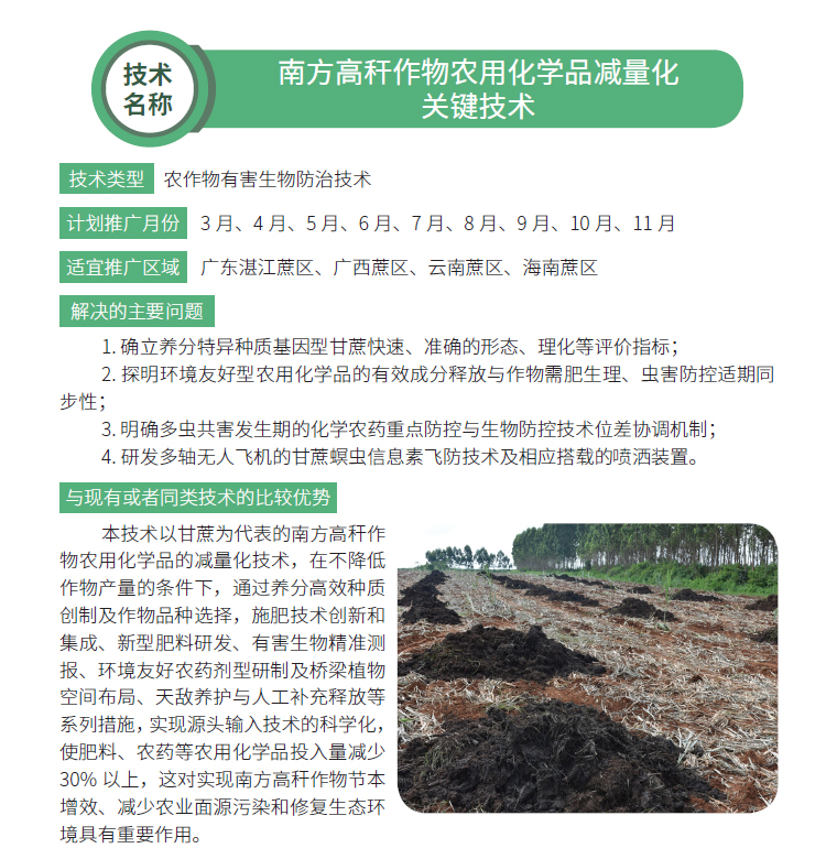 2019年主推技术:南方高秆作物农用化学品减量化 关键技术