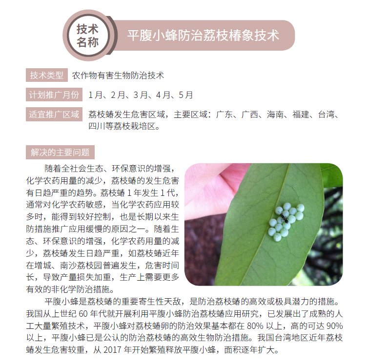 2019年主推技术:平腹小蜂防治荔枝椿象技术