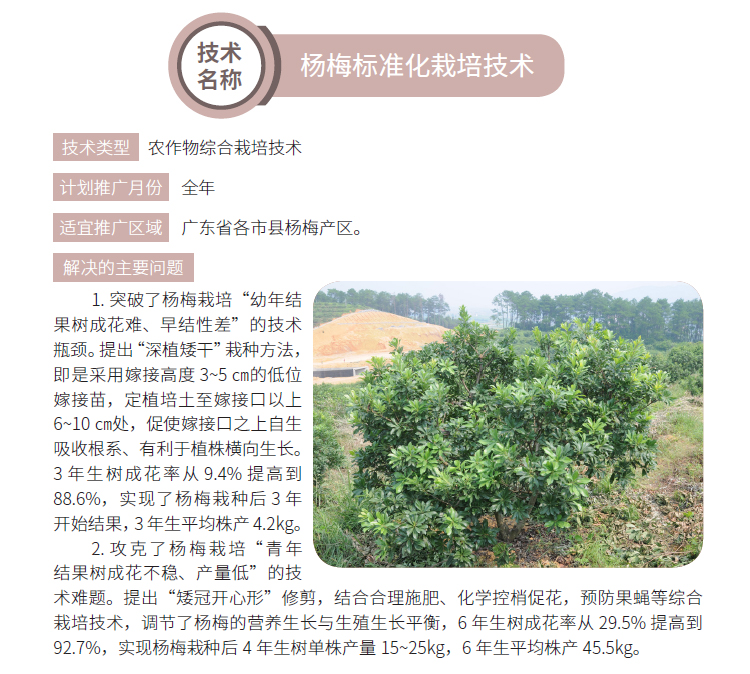 2019年主推技术:杨梅标准化栽培技术