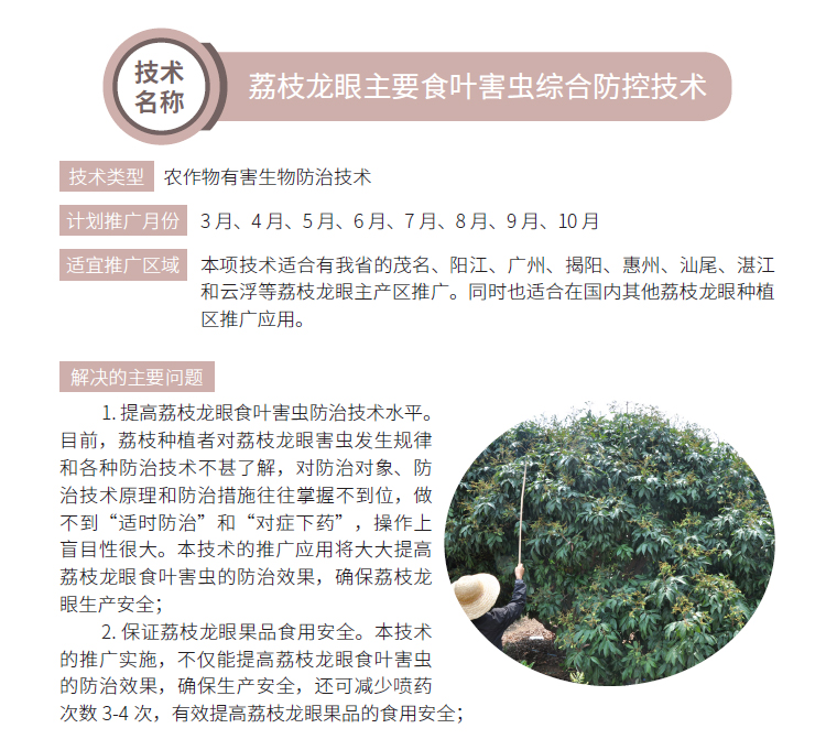 2019年主推技术:荔枝龙眼主要食叶害虫综合防控技术