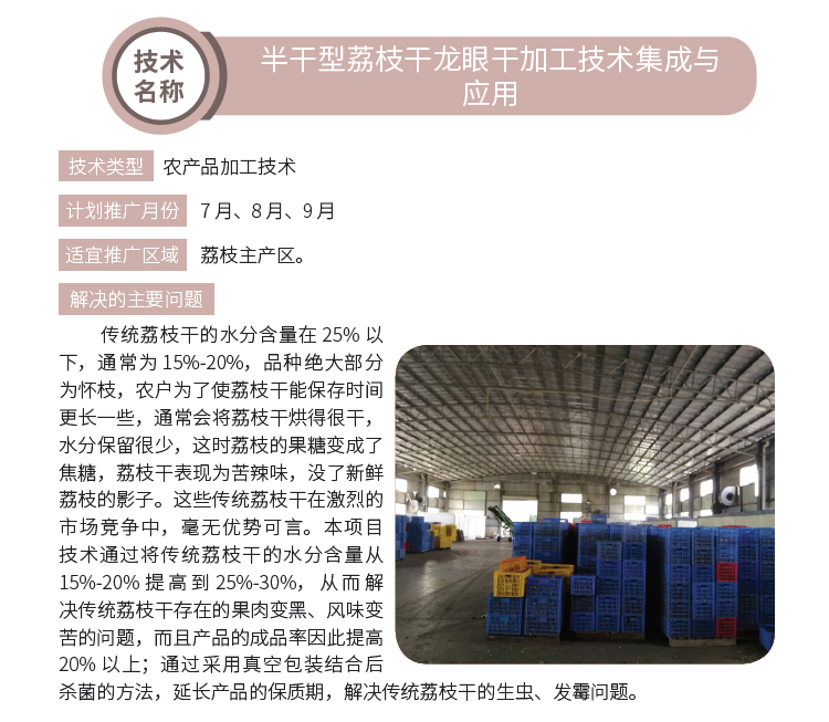 2019年主推技术:半干型荔枝干龙眼干加工技术集成与应用