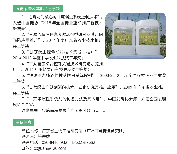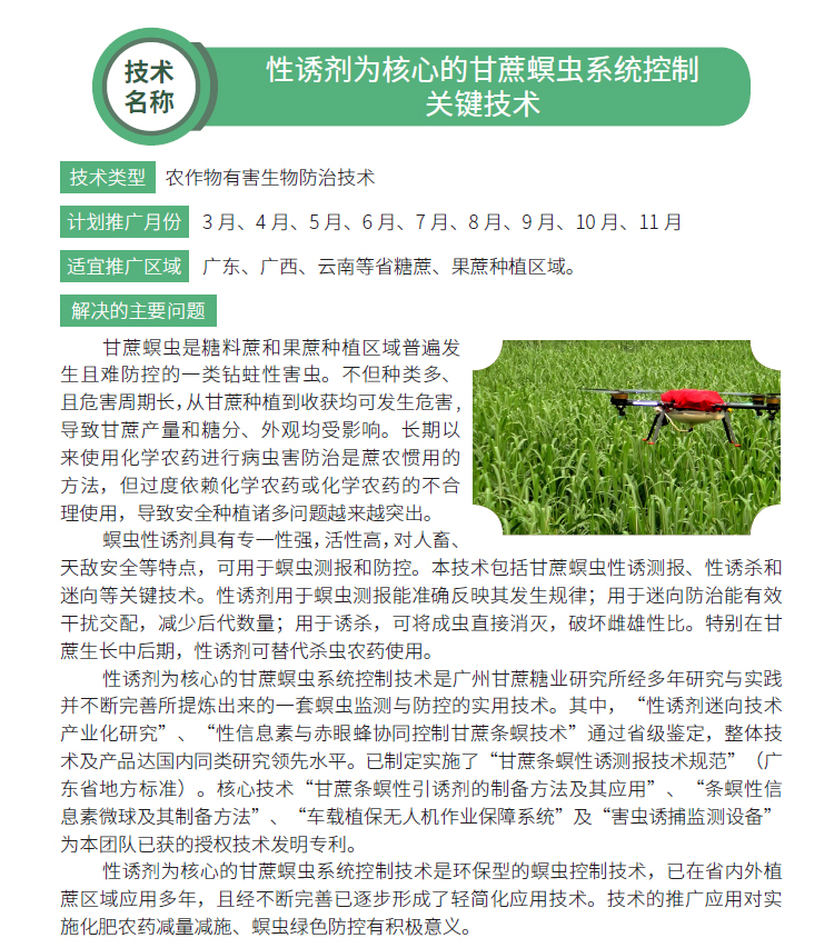2019年主推技术:性诱剂为核心的甘蔗螟虫系统控制 关键技术