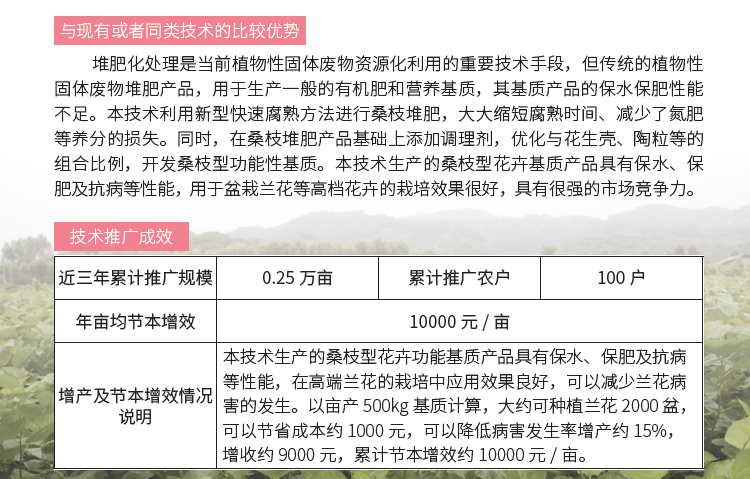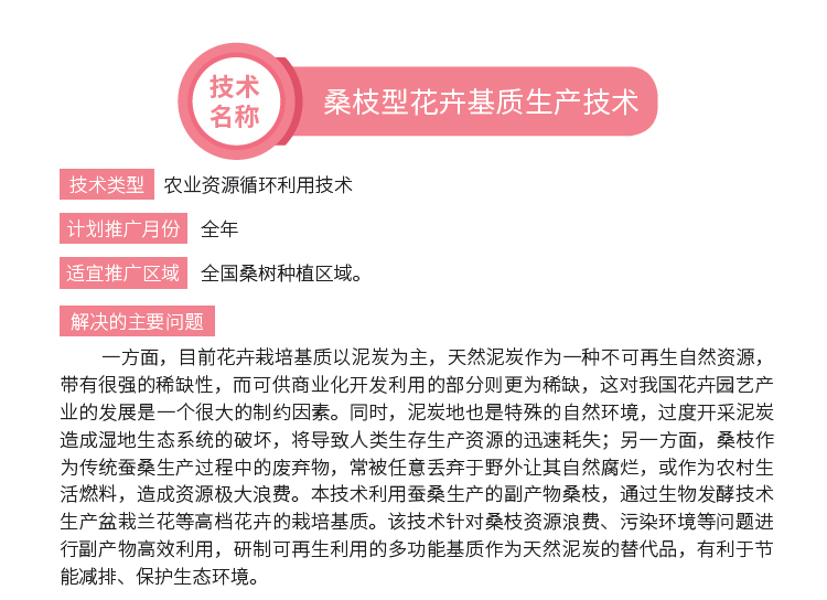 2019年主推技术:桑枝型花卉基质生产技术
