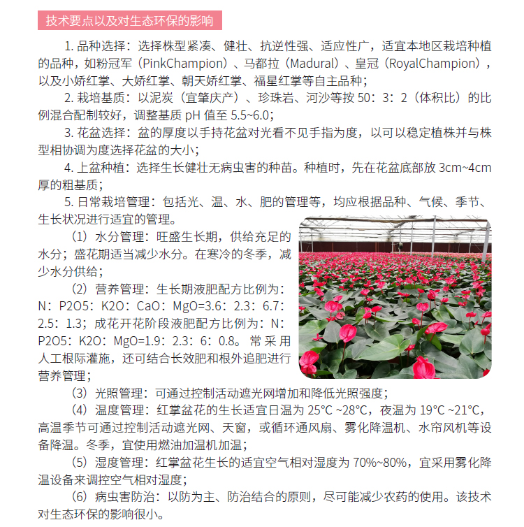 2019年主推技术:红掌盆花生产技术规范