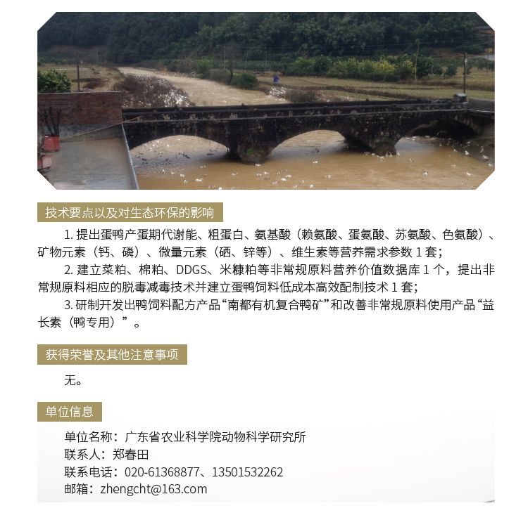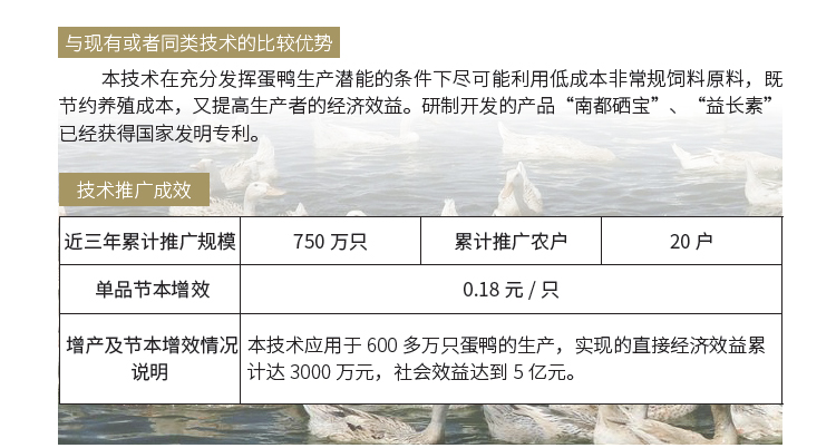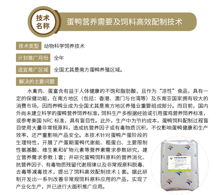 2019年主推技术:蛋鸭营养需要及饲料高效配制技术