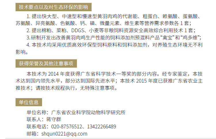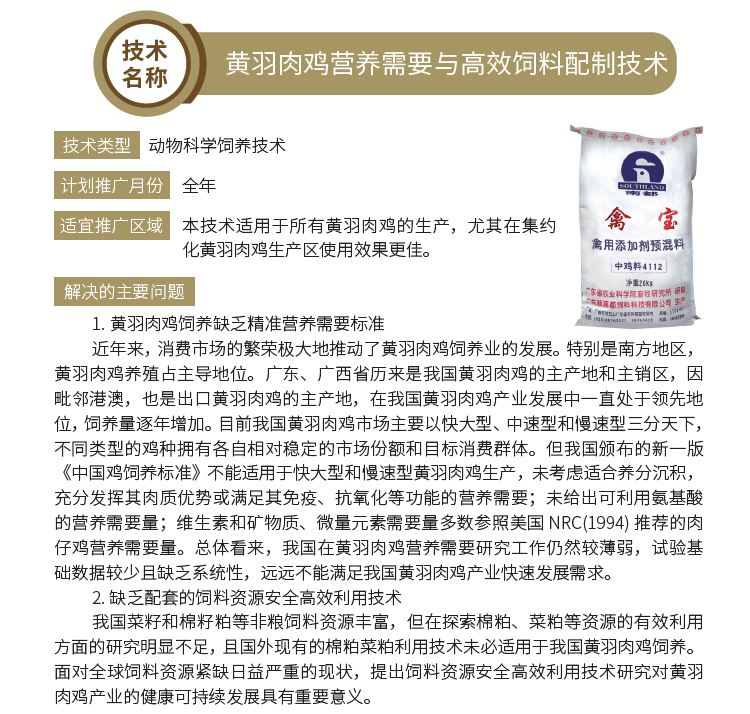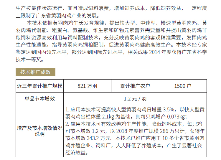 2019年主推技术:黄羽肉鸡营养需要与高效饲料配制技术