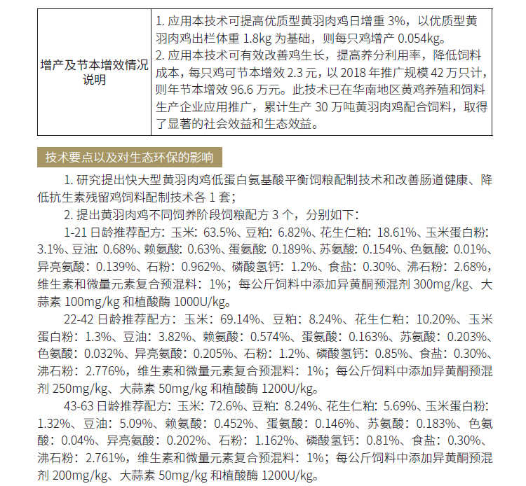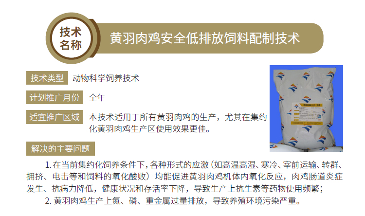 2019年主推技术:黄羽肉鸡安全低排放饲料配制技术