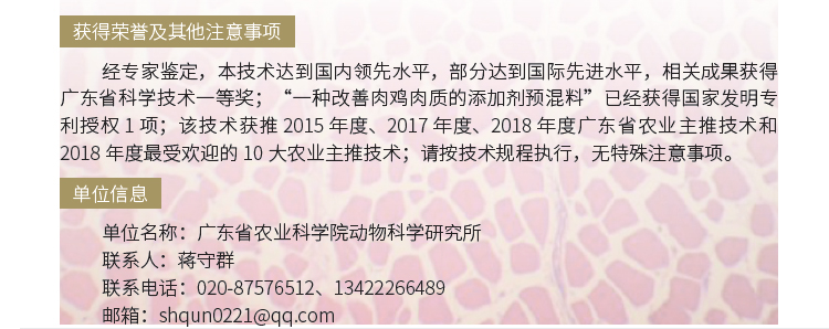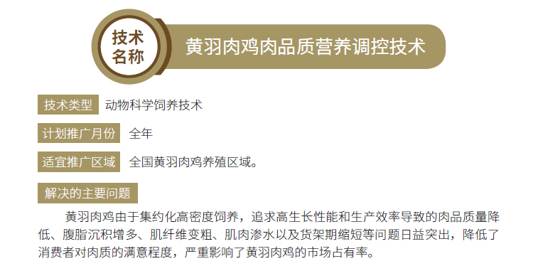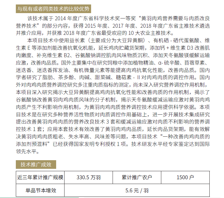 2019年主推技术:黄羽肉鸡肉品质营养调控技术