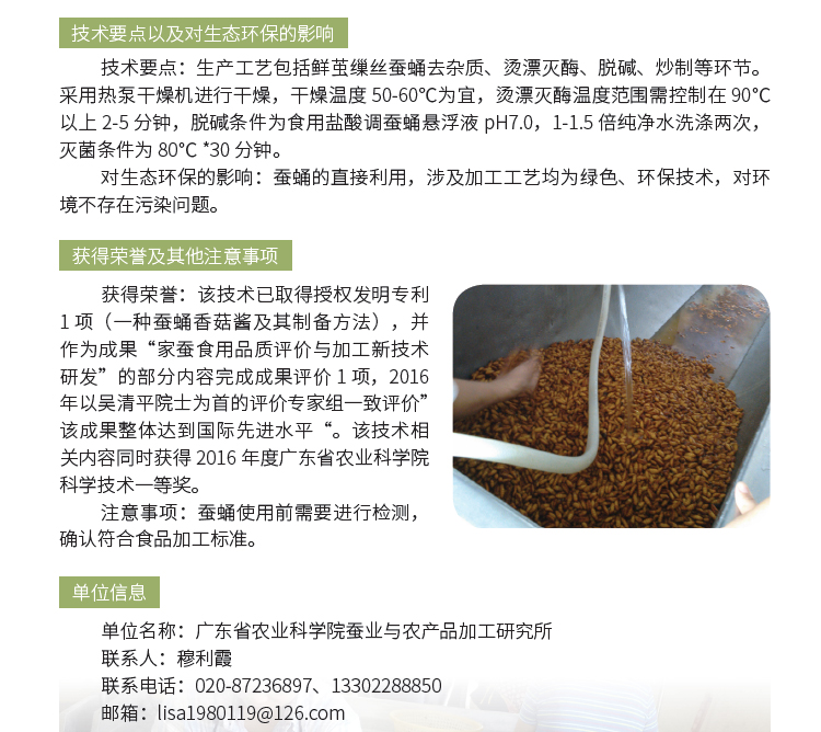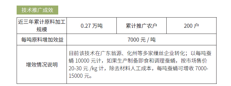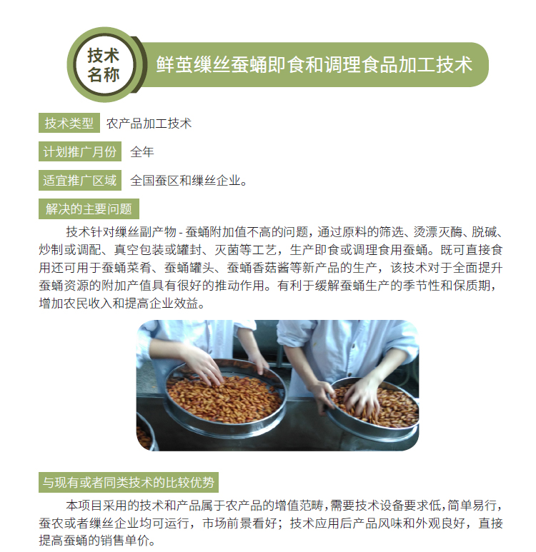 2019年主推技术:鲜茧缫丝蚕蛹即食和调理食品加工技术