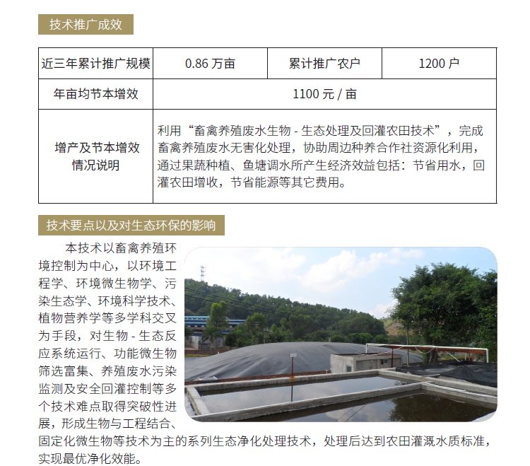 2019年主推技术:畜禽养殖废水生物-生态处理及回灌农田技术