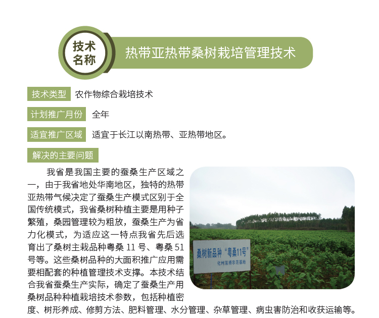 2019年主推技术:热带亚热带桑树栽培管理技术
