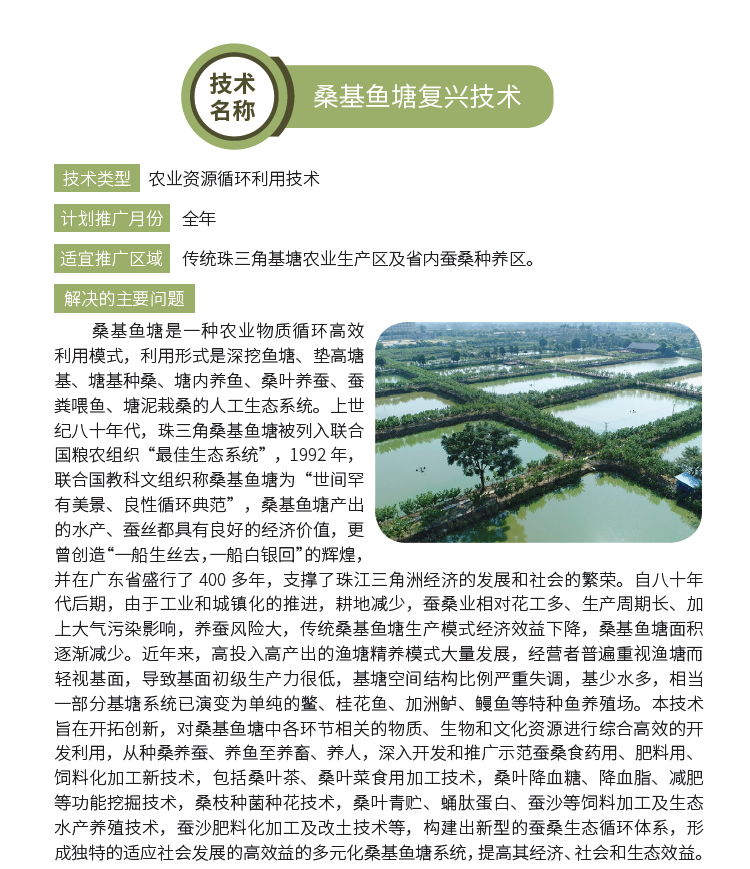 2019年主推技术:桑基鱼塘复兴技术