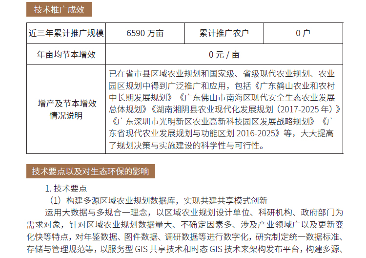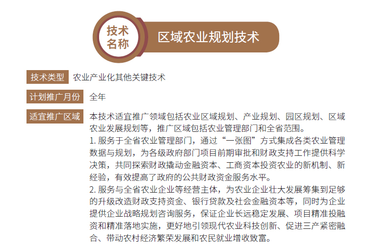 2019年主推技术:区域农业规划技术