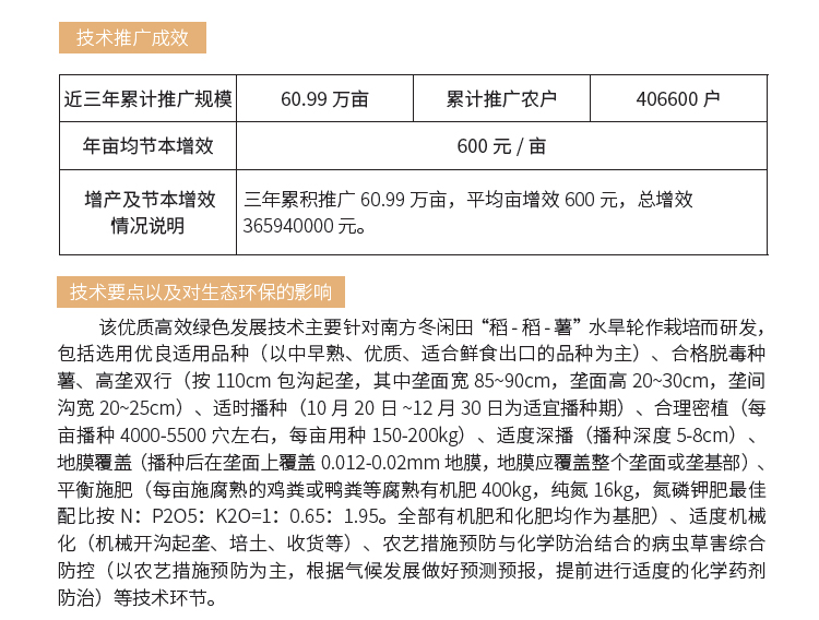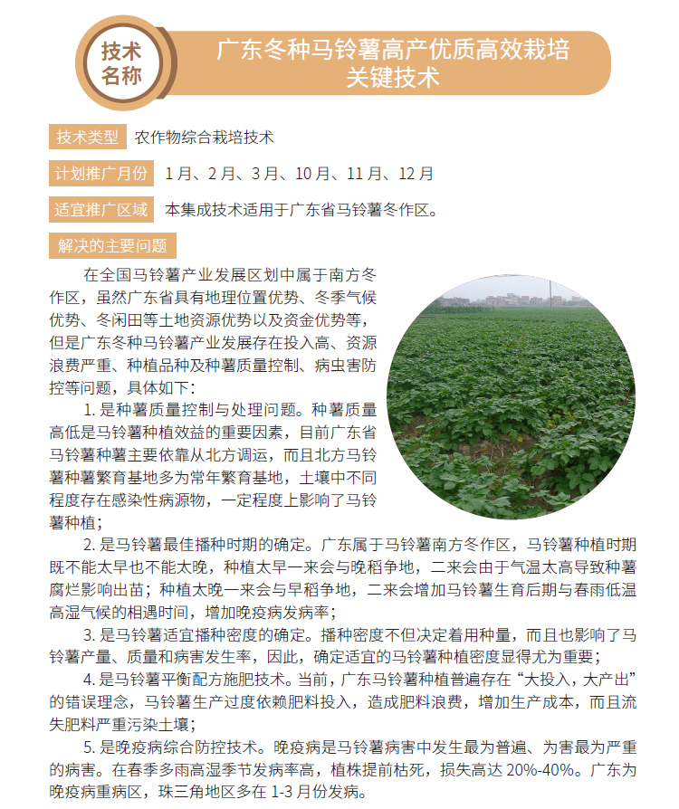 2019年主推技术:广东冬种马铃薯高产优质高效栽培关键技术