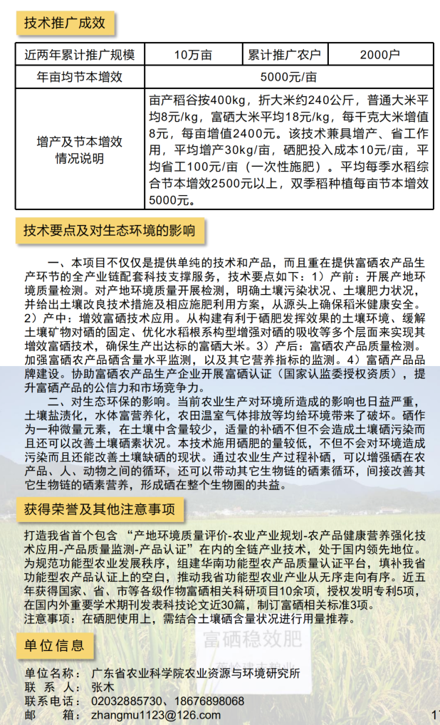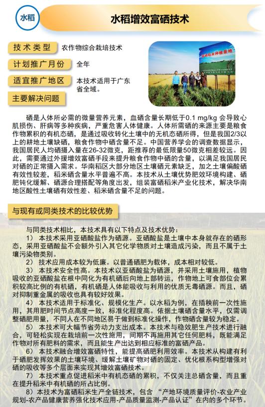 2021年农业主推技术:水稻增效富硒技术