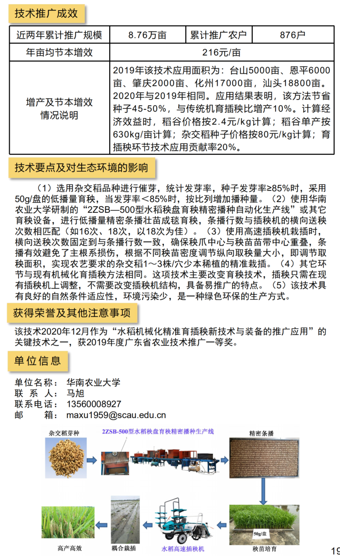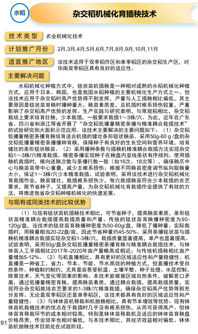 2021年农业主推技术:杂交稻机械化育插秧技术