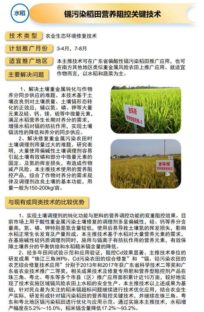 2021年农业主推技术:镉污染稻田营养阻控关键技术