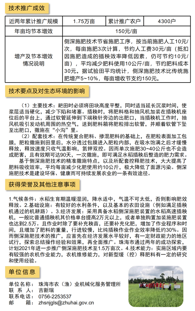 2021年农业主推技术:水稻机插秧同步侧深施肥技术