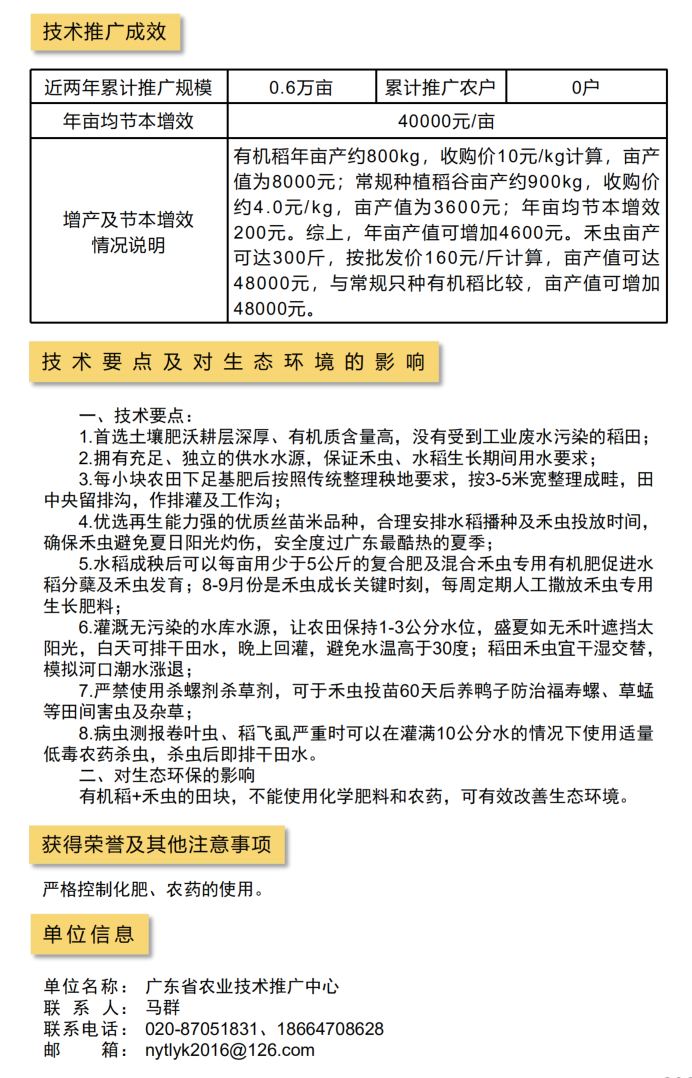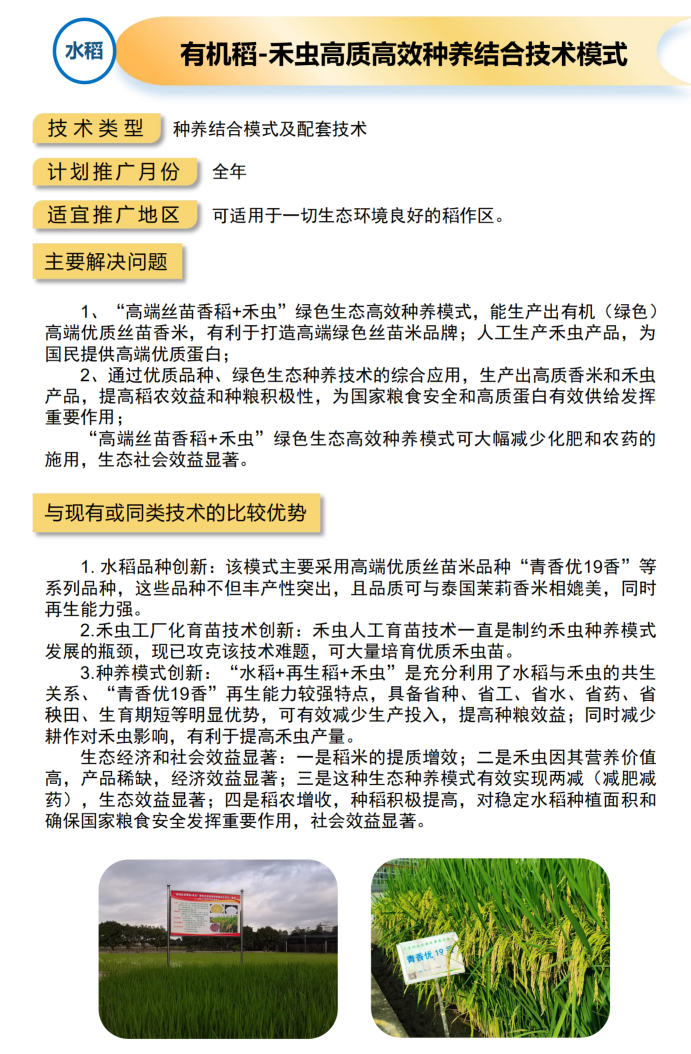 2021年农业主推技术:有机稻-禾虫高质高效种养结合技术模式