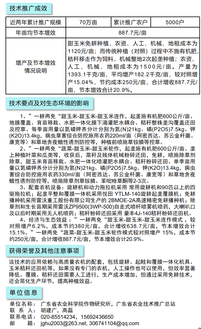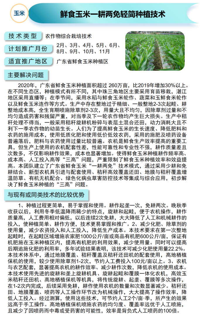 2021年农业主推技术:鲜食玉米一耕两免轻简种植技术
