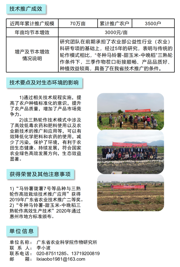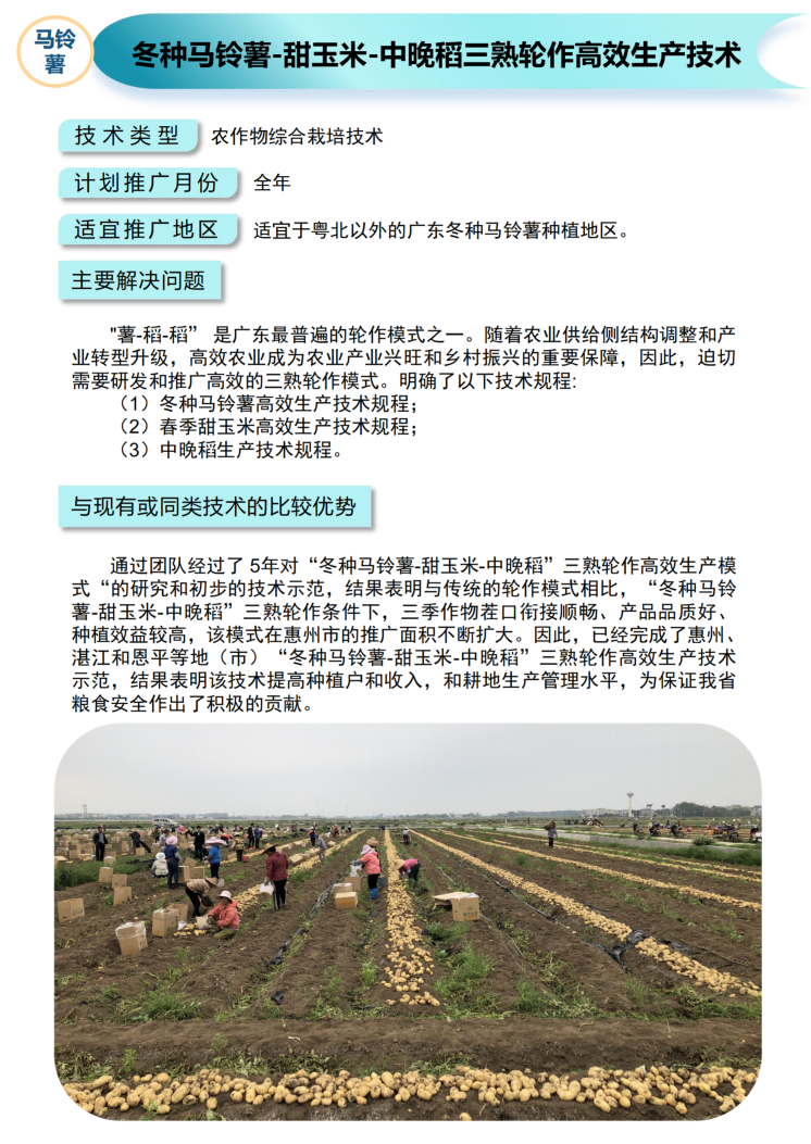 2021年农业主推技术:冬种马铃薯-甜玉米-中晚稻三熟轮作高效生产技术