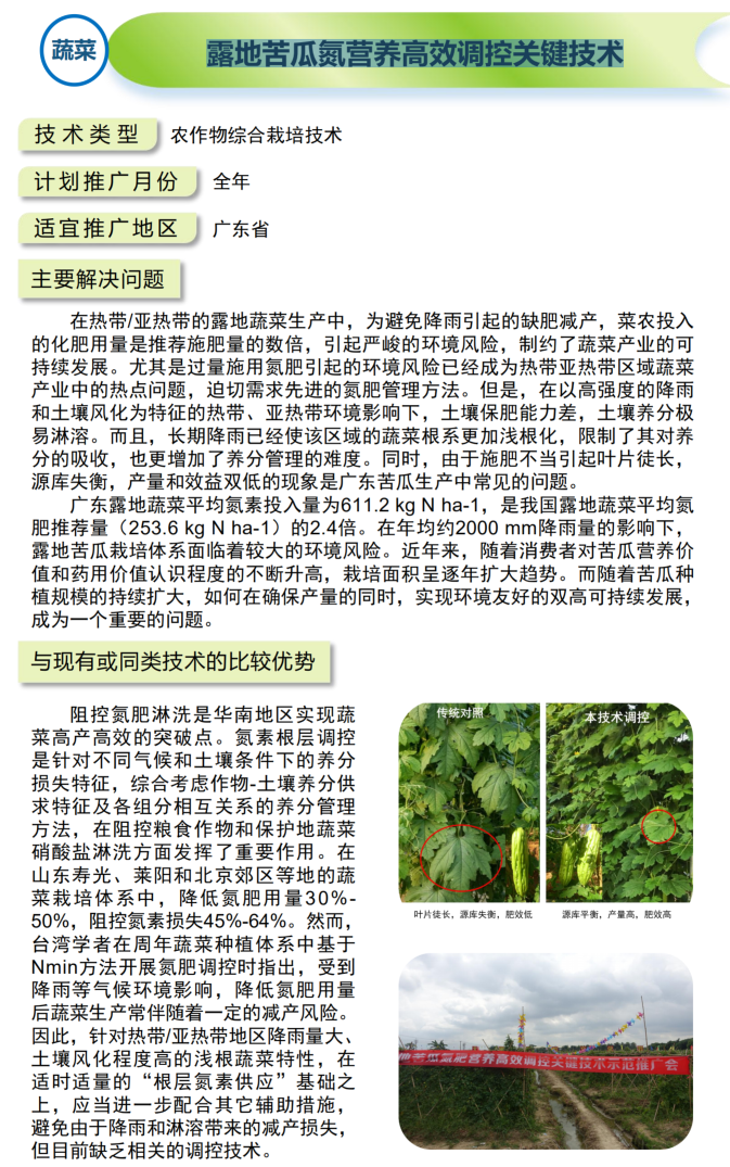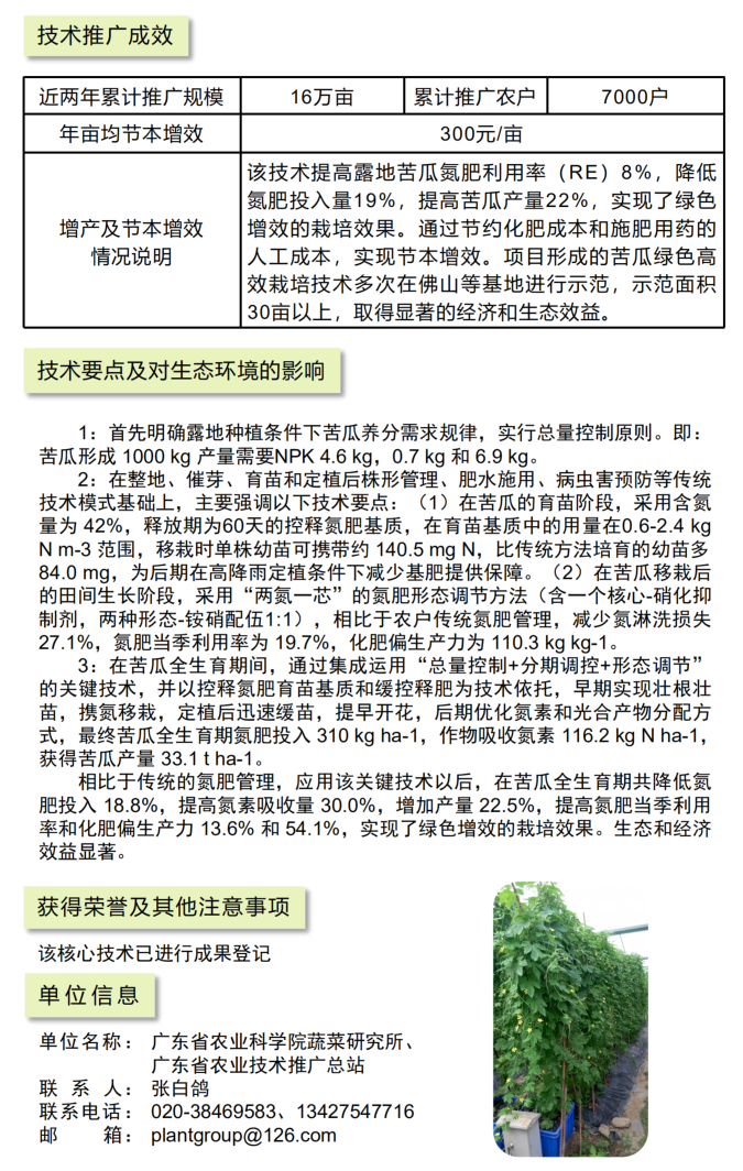 2021年农业主推技术:露地苦瓜氮营养高效调控关键技术