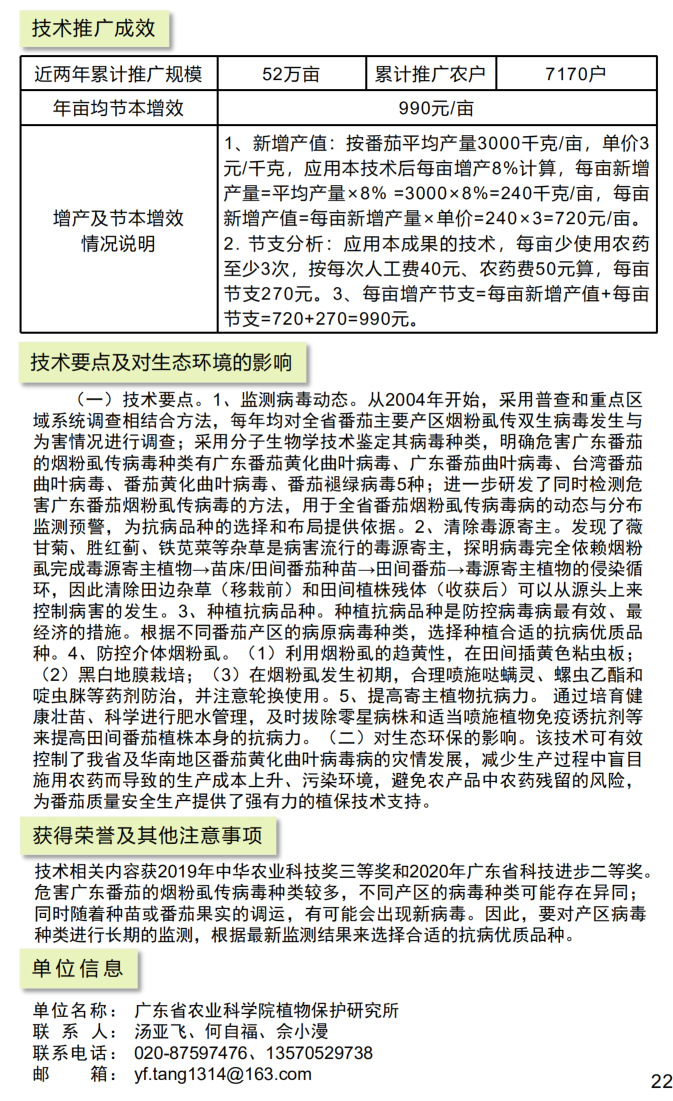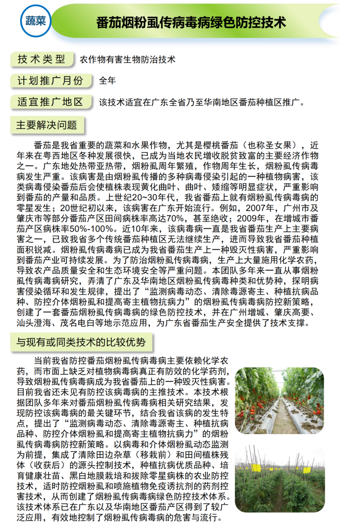 2021年农业主推技术:番茄烟粉虱传病毒病绿色防控技术
