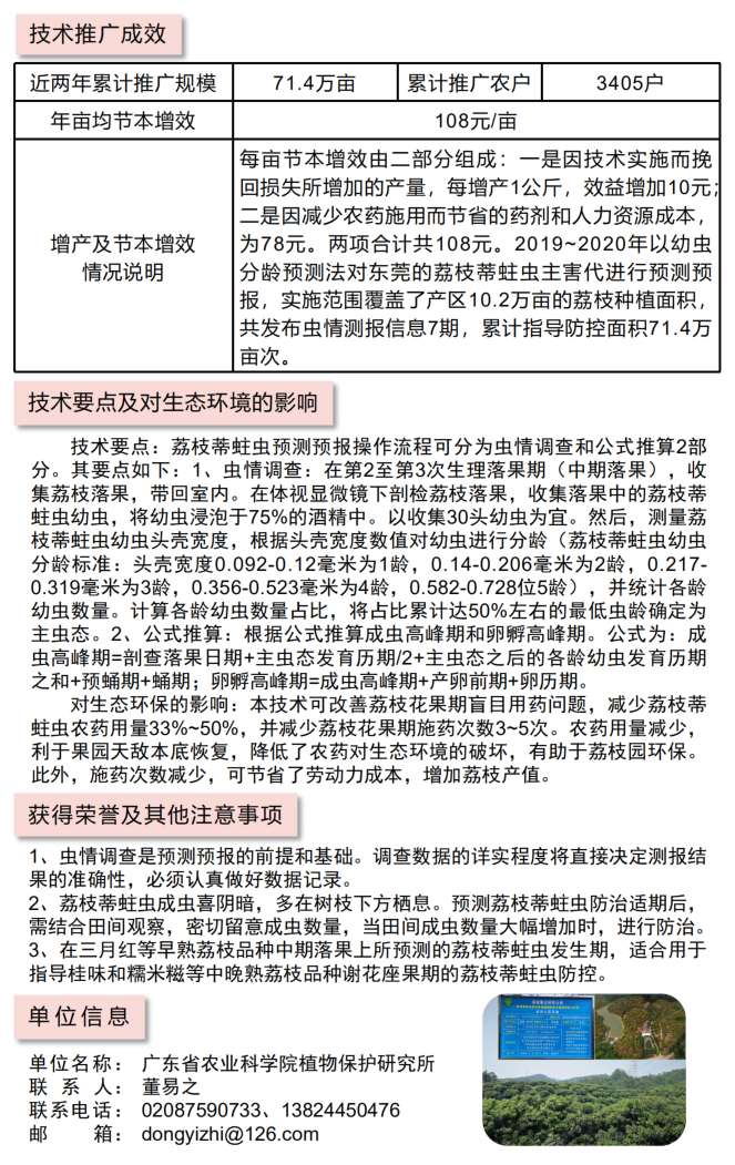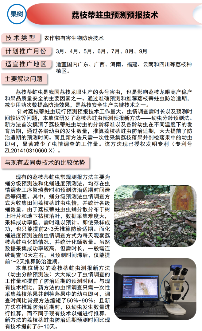 2021年农业主推技术:荔枝蒂蛀虫预测预报技术