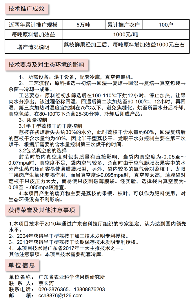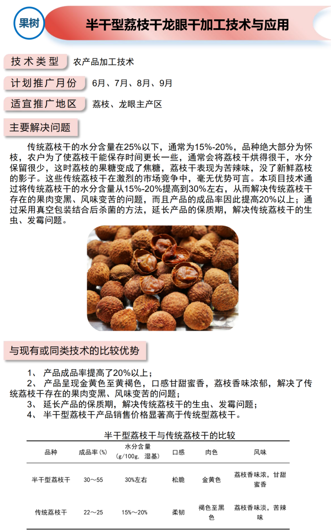 2021年农业主推技术:半干型荔枝干龙眼干加工技术与应用