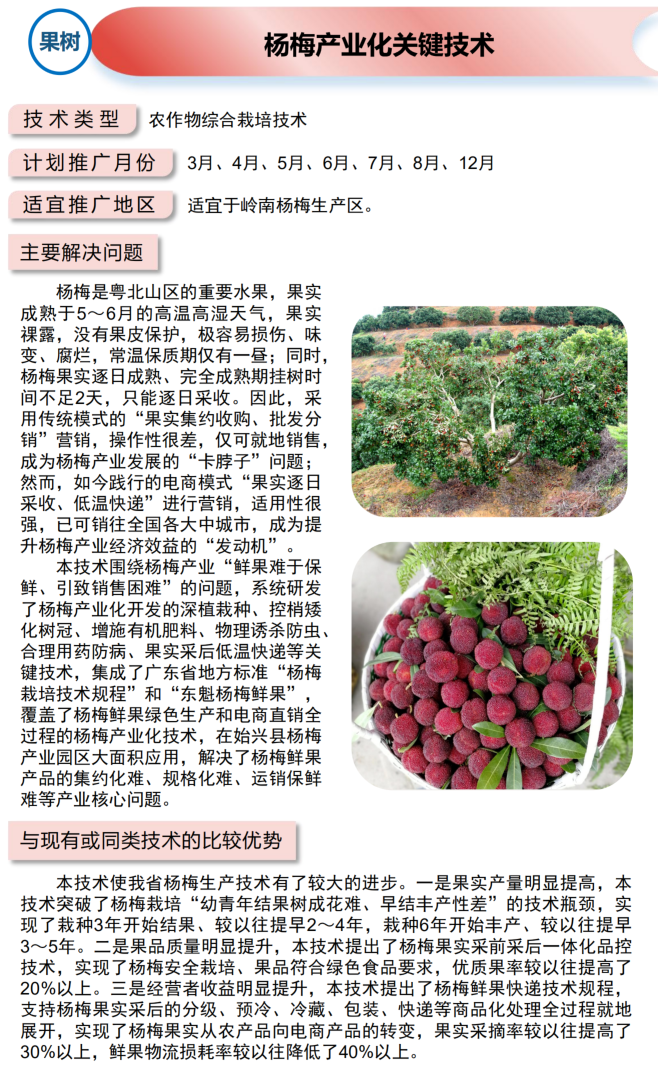 2021年农业主推技术:杨梅产业化关键技术