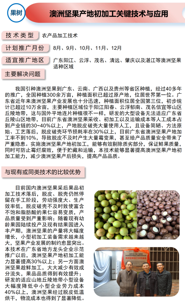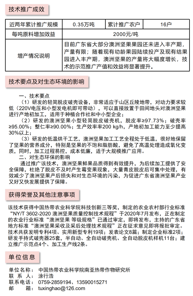 2021年农业主推技术:澳洲坚果产地初加工关键技术与应用