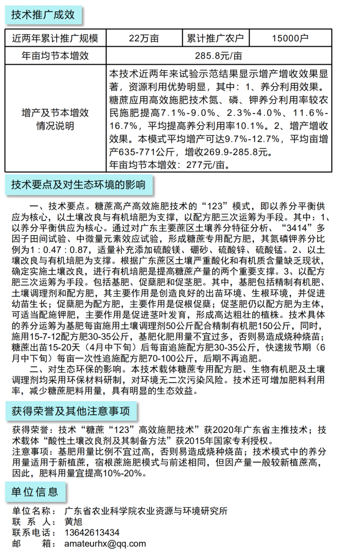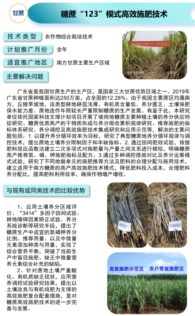 2021年农业主推技术:糖蔗“123”模式高效施肥技术