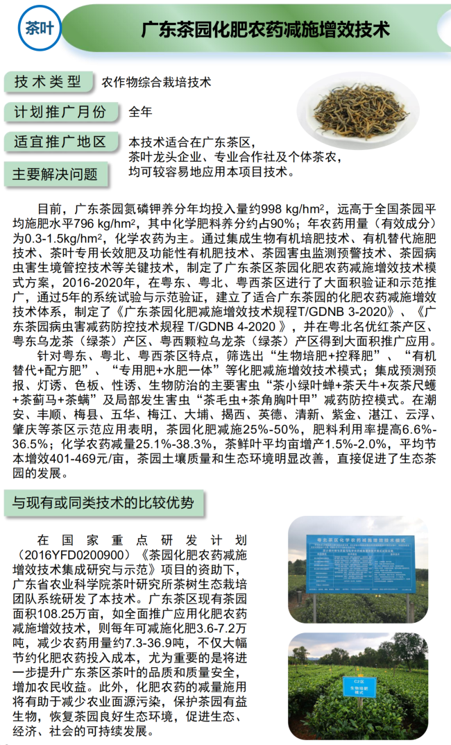 2021年农业主推技术:广东茶园化肥农药减施增效技术