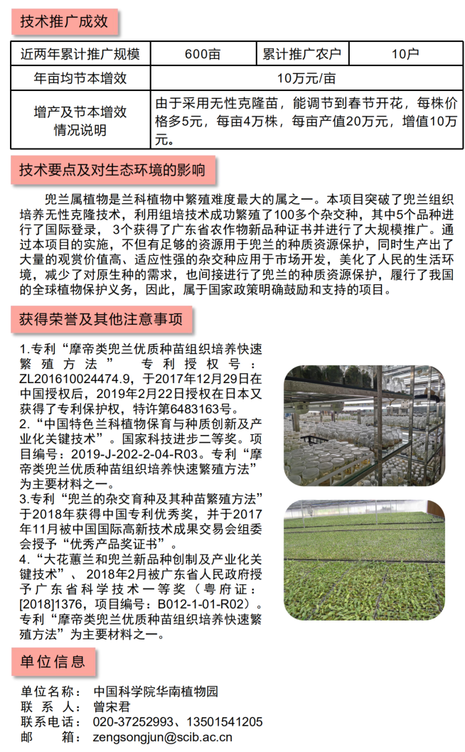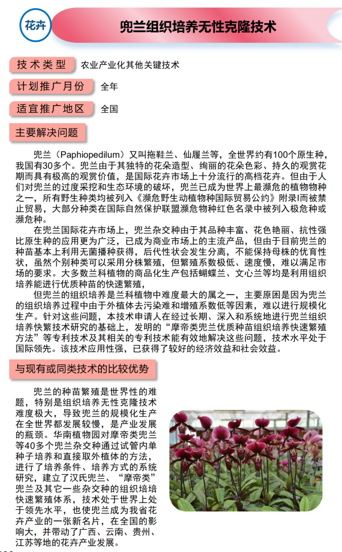 2021年农业主推技术:兜兰组织培养无性克隆技术