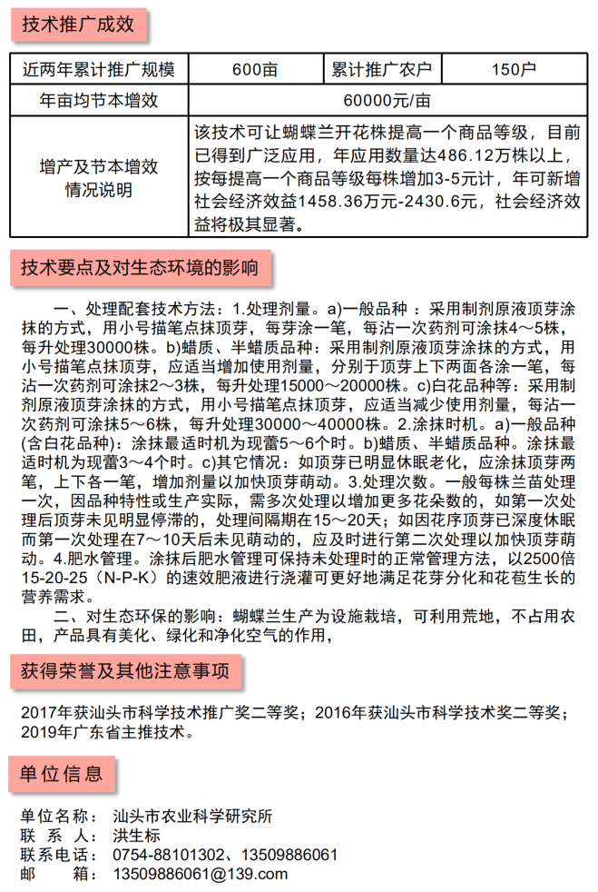 2021年农业主推技术:蝴蝶兰花朵增多技术