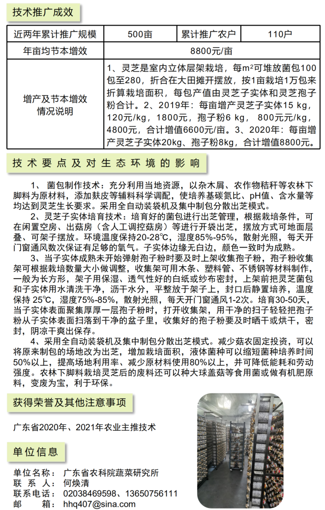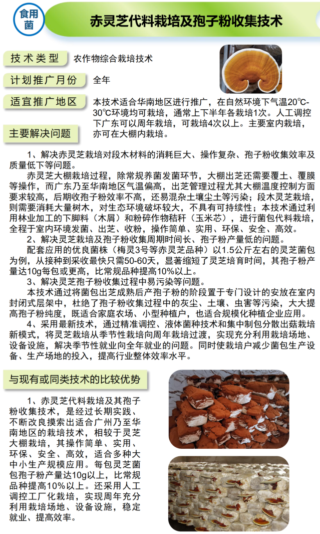 2021年农业主推技术:赤灵芝代料栽培及孢子粉收集技术