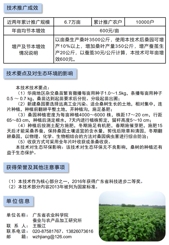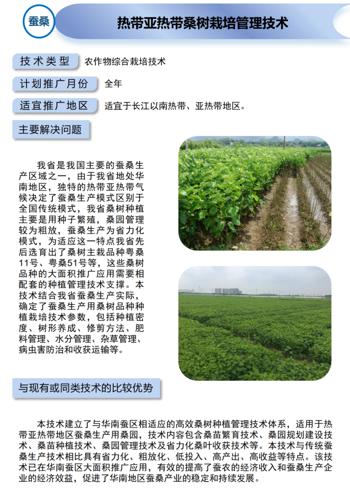 2021年农业主推技术:热带亚热带桑树栽培管理技术