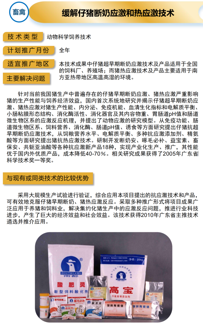 2021年农业主推技术:缓解仔猪断奶应激和热应激技术