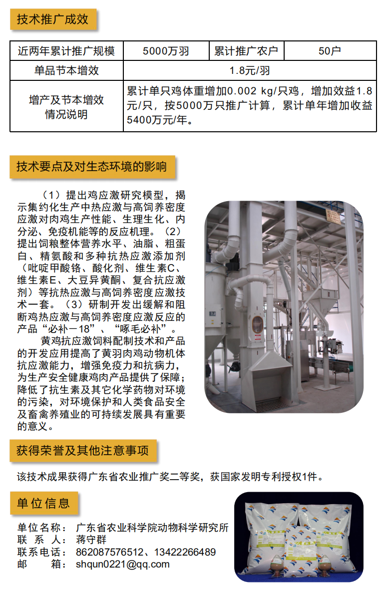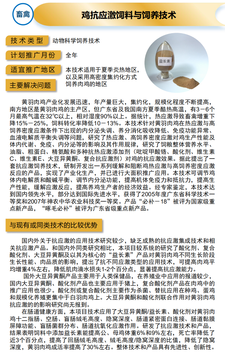 2021年农业主推技术:鸡抗应激饲料与饲养技术