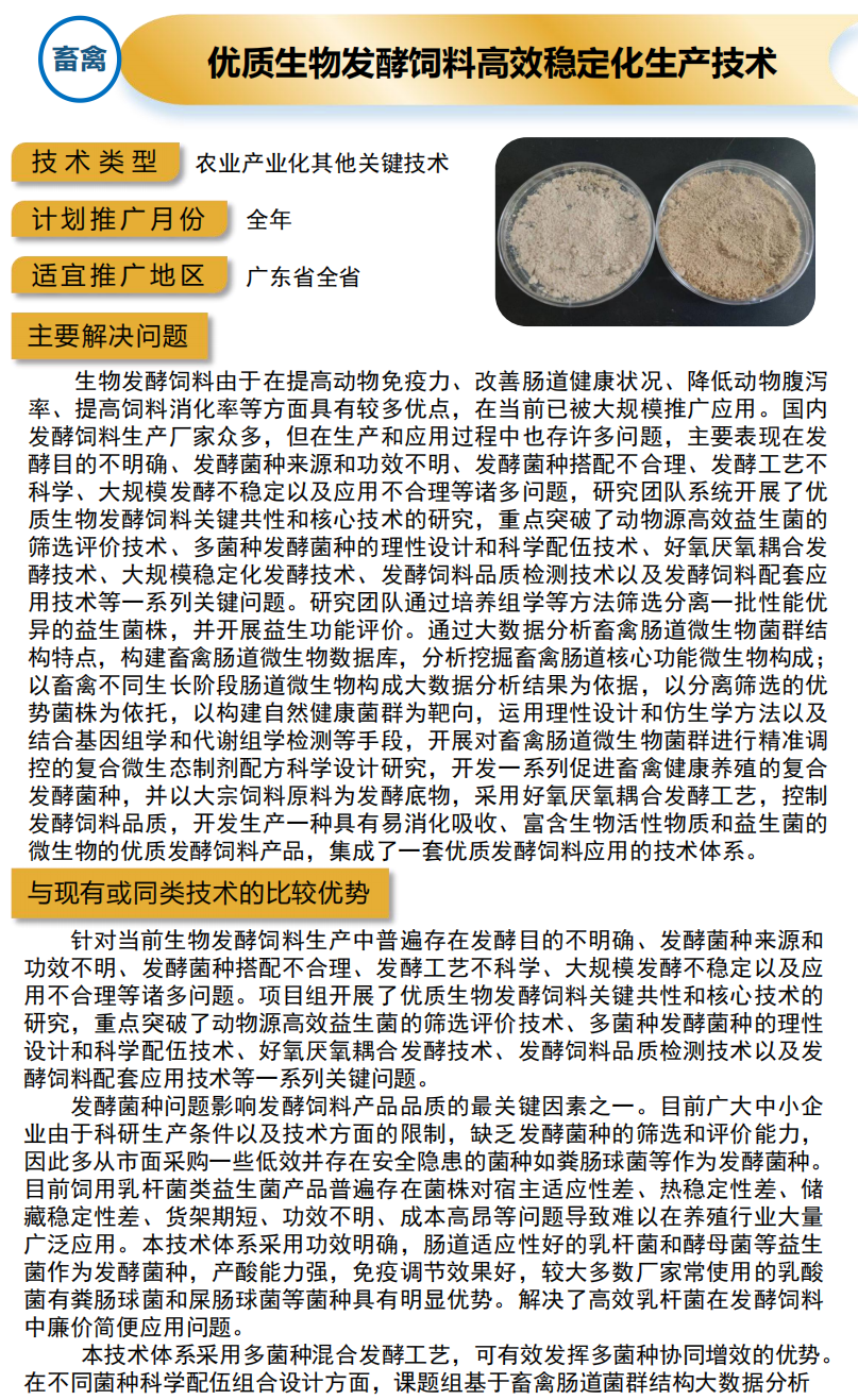 2021年农业主推技术:优质生物发酵饲料高效稳定化生产技术