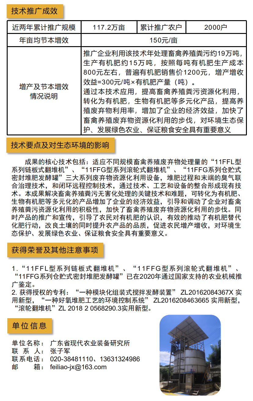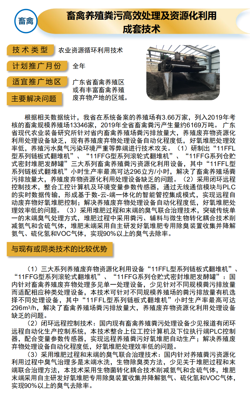 2021年农业主推技术:畜禽养殖粪污高效处理及资源化利用 成套技术