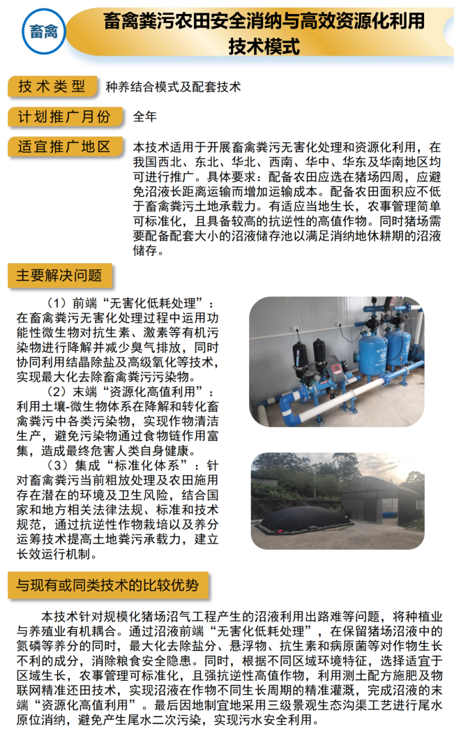 2021年农业主推技术:畜禽粪污农田安全消纳与高效资源化利用 技术模式