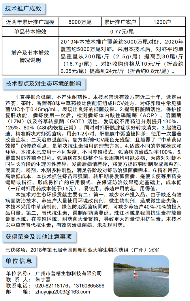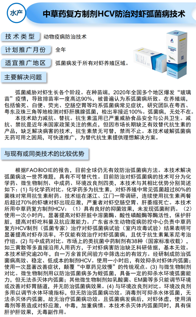 2021年农业主推技术:中草药复方制剂HCV防治对虾弧菌病技术